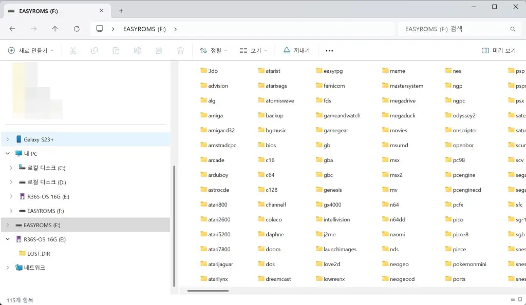 간단히 말하면, 원하는 롬 파일을 웹에서 다운로드하고, 그 파일을 기기의 롬 폴더에 넣기만 하면 됩니다. SD카드를 컴퓨터에 연결하면 OS 파티션과 롬이 들어있는 파티션이 나옵니다. R36S 기기에서는 롬이 들어갈 파티션에 원하는 롬 파일을 드래그 앤 드롭하면 끝!